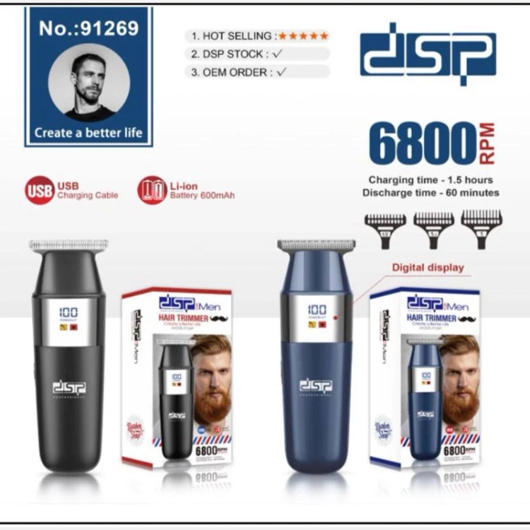ریشتراش91269 کمپانی : dsp مدل تجاری : 91269 جنس تیغه ها : استیل ضد زنگ جنس باتری : لیتیومی نمایشگر شارژ : دارد تکنولوژی اصلاح
