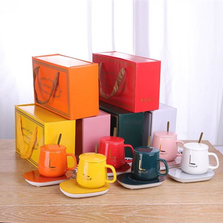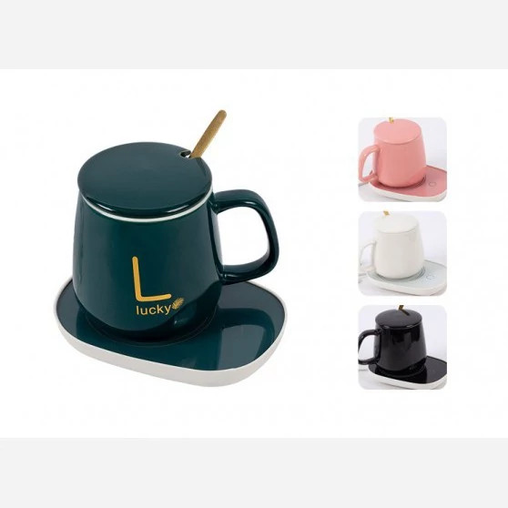 ماگ سرامیکی درب دار دارای قاشق فلزی دارای صفحه گرمکن برقی مناسب برای حفظ دمای نوشیدنی های مختلف نگهداری دما، 45 تا 55 درجه سانتی گراد مجهز به خاموشی خودکار