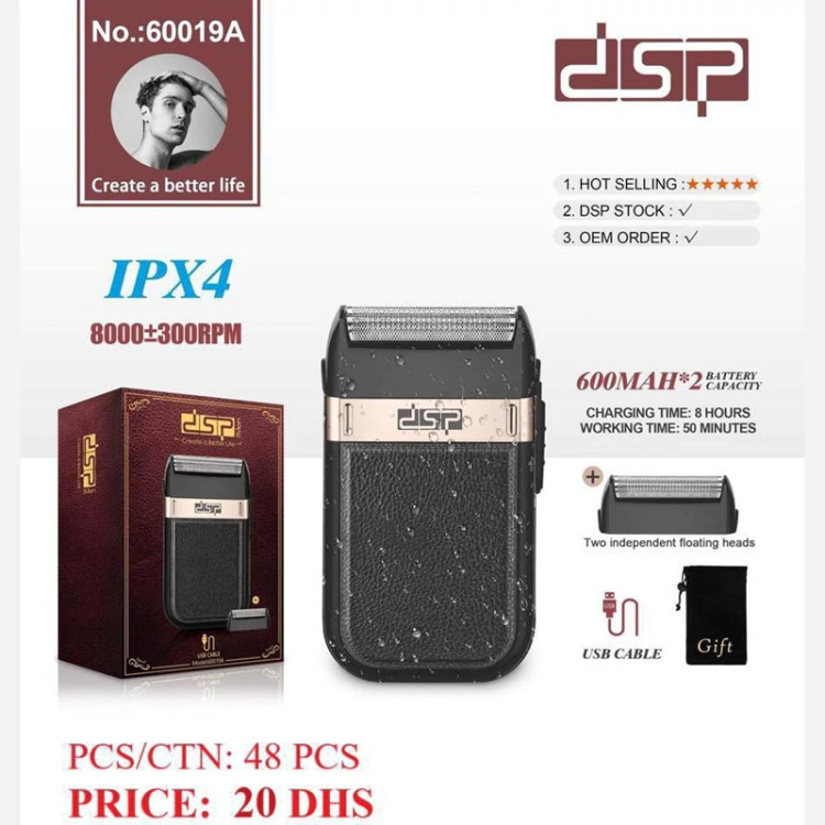 نام محصول :شيور كد : 60019 ماشین اصلاح موی صورت دی اس پی مدل 60019 · تجهیزات همراه. کیف نگهداری، روغن · تکنولوژی اصلاح. برش مستقیم · قابلیتها. قابلیت شستوشو · منبع انرژی. کابل USB.