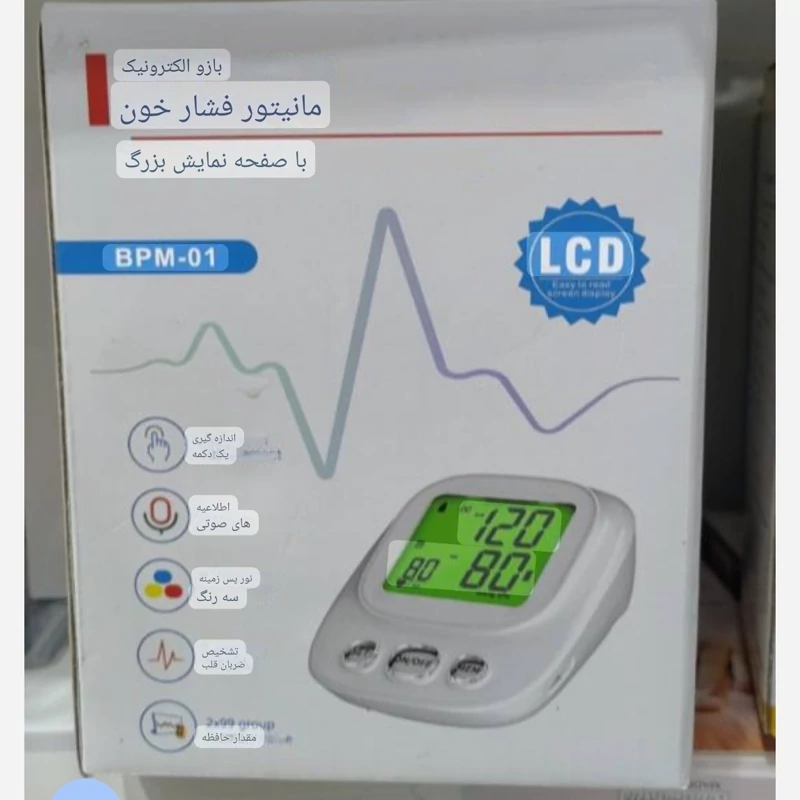 فشارسنج سخنگوی BPM-01 بازو الکترونیک زبان انگلیسی صفحه نمایش LCD بزرگ تشخیص ضربان قلب حافظه ذخیره دارای نور پس زمینه رنگی