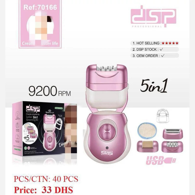 مدل 70166 اپیلیدی 5 کاره برند دی اس پی منبع تغذیه این دستگاه شارژی است و دارای باتری با ظرفیت 500 میلی آمپر ساعت میباشد زمان شارژ دستگاه 6 ساعت است و زمان کارکرد آن در حالت آماده به کار 35 دقیقه است. موتور این اپیلیدی از نوع بوده و با سرعت 9200 دور در دقیقه میچرخد این دستگاه 1505-SH کاره بوده و به همراه خود سریهای سوهان موچین شیور، شانه تریمر و برس تمیز کننده را دارد جزئیات بیشتر منبع تغذیه شارژی ظرفیت باتری 500 میلی آمپر ساعت زمان شارژ 6 ساعت زمان کارکرد 35 دقیقه در حالت آماده به کار نوع موتور: 150-SH سرعت چرخش موتور 9200 دور در دقیقه اقلام همراه سری سوهان سری موچین سری شیور شانه تریمر برس تمیز کننده ویژگی قابلیت اصلاح با شماره صفر