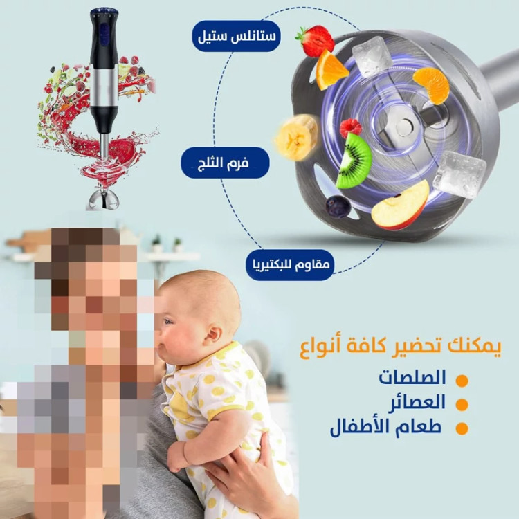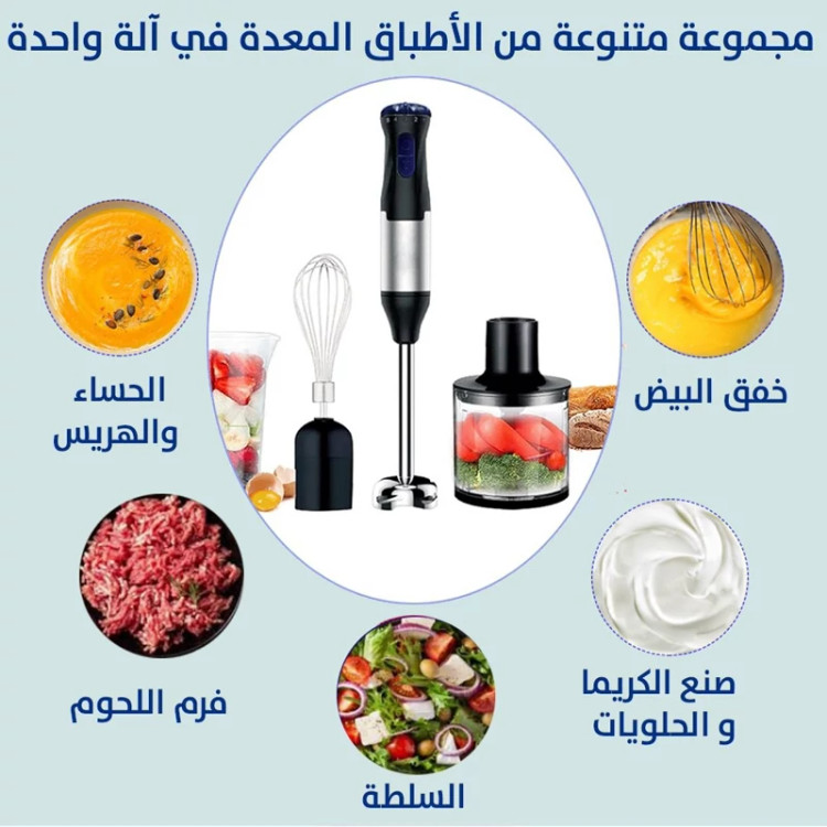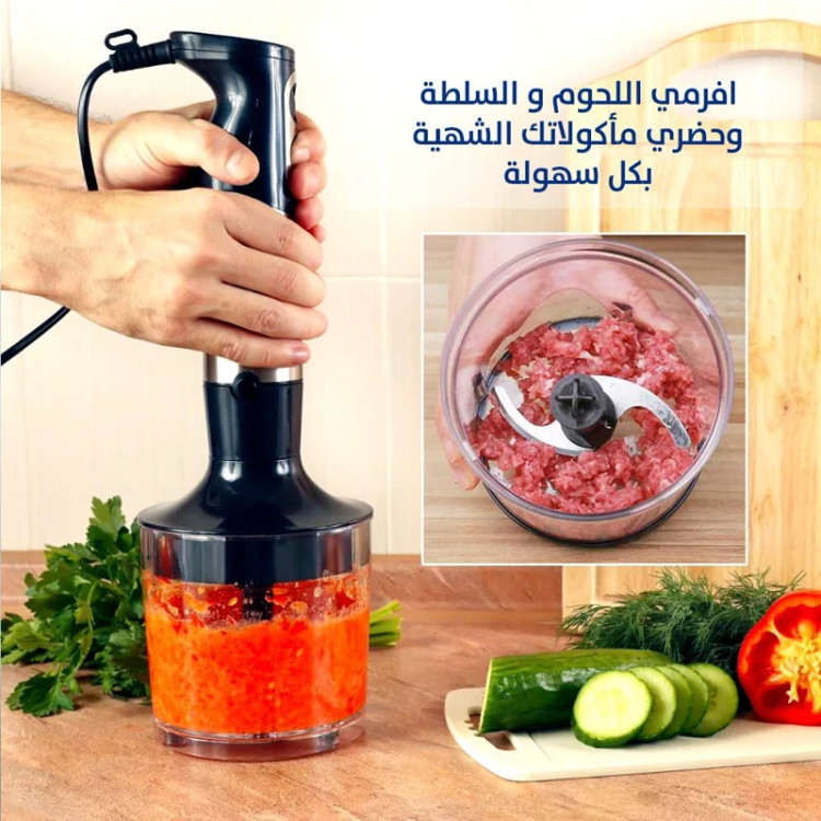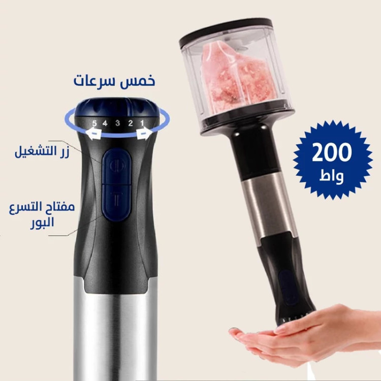گوشتکوب چند کاره پنج سرعته پره های فلزی 200وات حجم 500میلی و 700میلی همزن تخم مرغ هم زدن سریعتر سفیده تخممرغ و خامه را فراهم میکند. با این همزن، شما یک همزن دستی دارید که در تهیه مواد لازم برای کیک، کلوچه و سایر دسرها، زمان زیادی را برای شما صرفهجویی میکند گوشت و سالاد را خرد کنید و غذاهای خوشمزه خود را به راحتی آماده کنید امکان له کردن میوه و... برای نوزادان