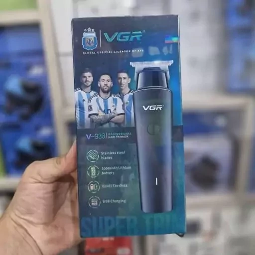 ماشین خط زن وی جی ار مدل V-933، بی سیم با توان 8 وات، قابلیت اصطکاک صفر، زمان شارژ 4 ساعت، برش بدون ایجاد تراکم، استیل ضد زنگ، رنگ مشکی. ماشین اصلاح موی سر و صورت وی جی ار مدل V-933 با تیغههای استیل پیشرفته و وزنی مناسب 280 گرم، اصلاحی دقیق و راحت را فراهم میکند. با قابلیت اصلاح از 0