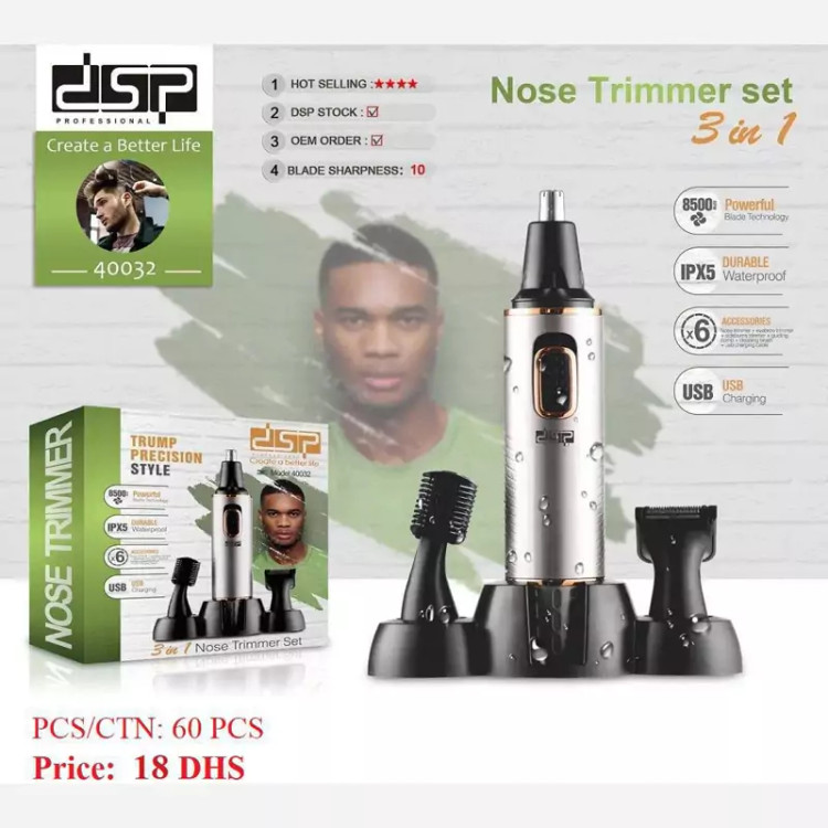 منبع انرژی: باتری لیتیومی 600 میلی آمپر مدت زمان شارژ: 2 ساعت مدت زمان استفاده: 120 دقیقه تعداد سری: سری موزن گوش، بینی و ابرو دارای گواهی IPX5 ضدآب قدرت موتور: 8500 دور در دقیقه