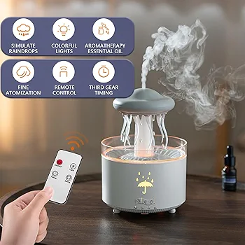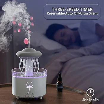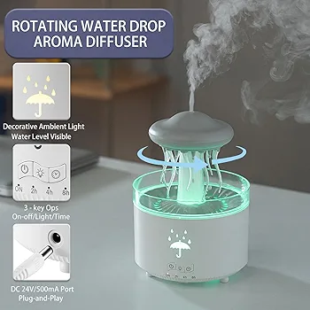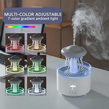 رطوبتسازهای قطره باران ما دارای طراحی منحصر به فرد و چشمنواز عروس دریایی با جلوه تغییر رنگ چراغ خواب 7 رنگ است. صدای قطرات باران آرامشبخش است و به خواب راحتتر کمک میکند. اضافه کردن چند قطره اسانس (شامل نمیشود)، فضایی آرام، تسکیندهنده و دلنشین را در خانه، محل کار، مغازه یا هر مکانی ایجاد میکند