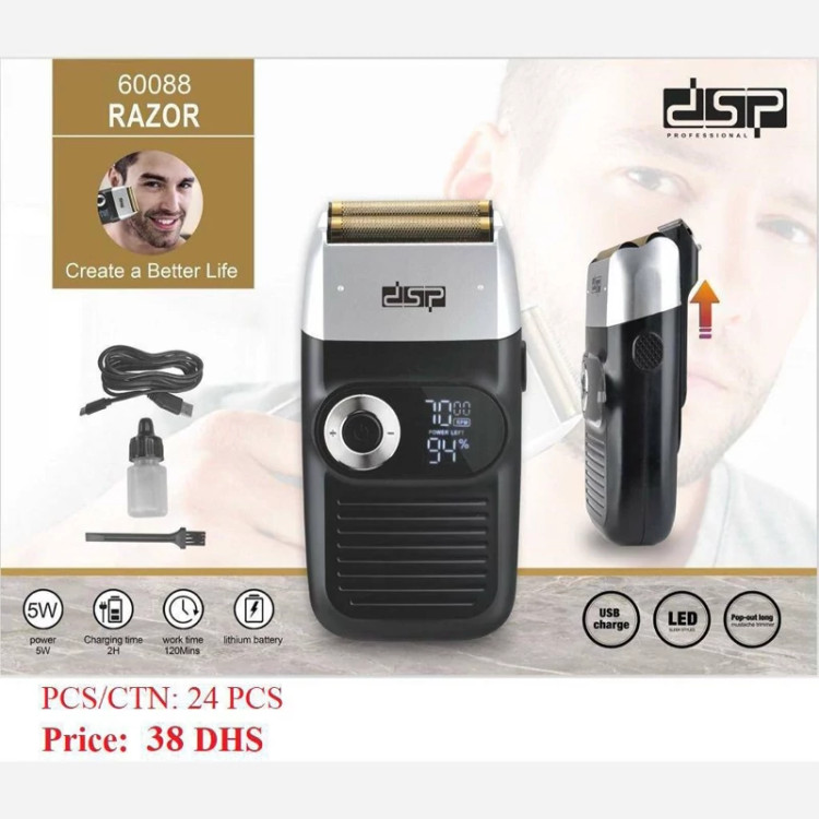 نام محصول :شيور مردانه برند دی اس پی كد : 60088 برند DSP · مدل 60088 · دارای نمایشگر دیجیتالی · قابلیت تنظیم قدرت موتور · دراای خط زن مخصوص · باتری 1400 میلی آمپری · فول شارژ شدن در 2 ساعت · قابلیت کار تا 2 ساعت.